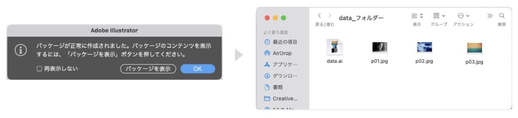 イラストレーターのパッケージ機能とは配置した画像を全て一つのフォルダに集めて保存する機能です。